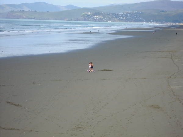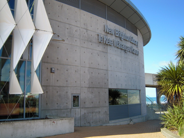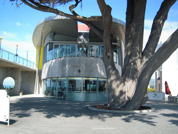 在看到建築物後, 真是佩服紐西蘭人政府. 這棟建築物的外圍是沙灘, 二樓有一座長橋可沿伸到海上. 今天, 一樣有很多人來看海跟看這座library